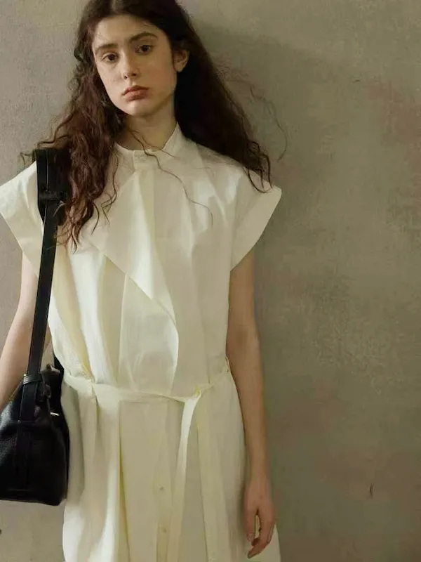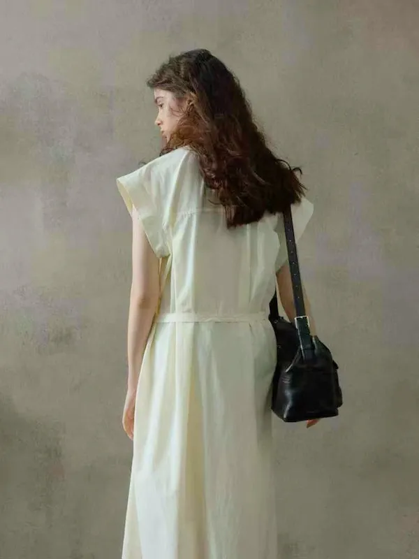 排釦棉麻內襯洋裝組