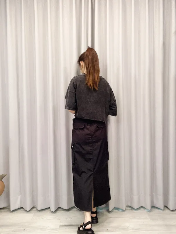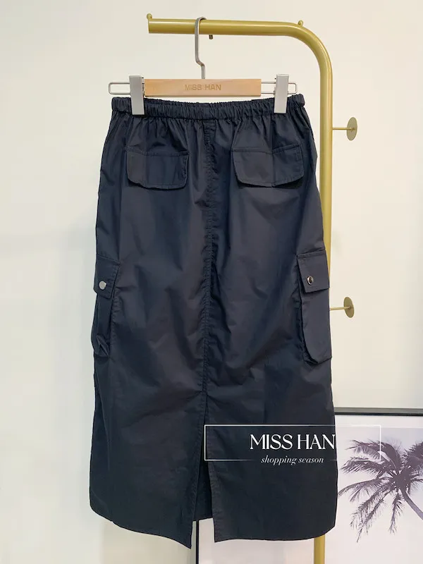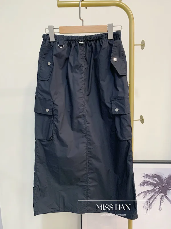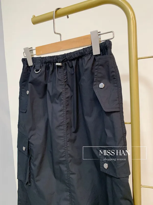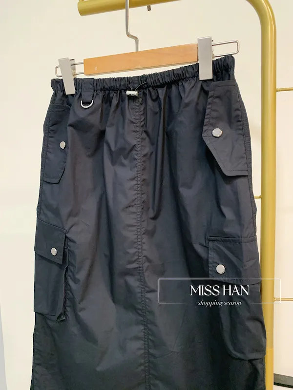 銀釦口袋工裝裙