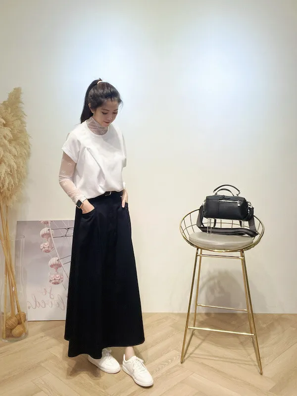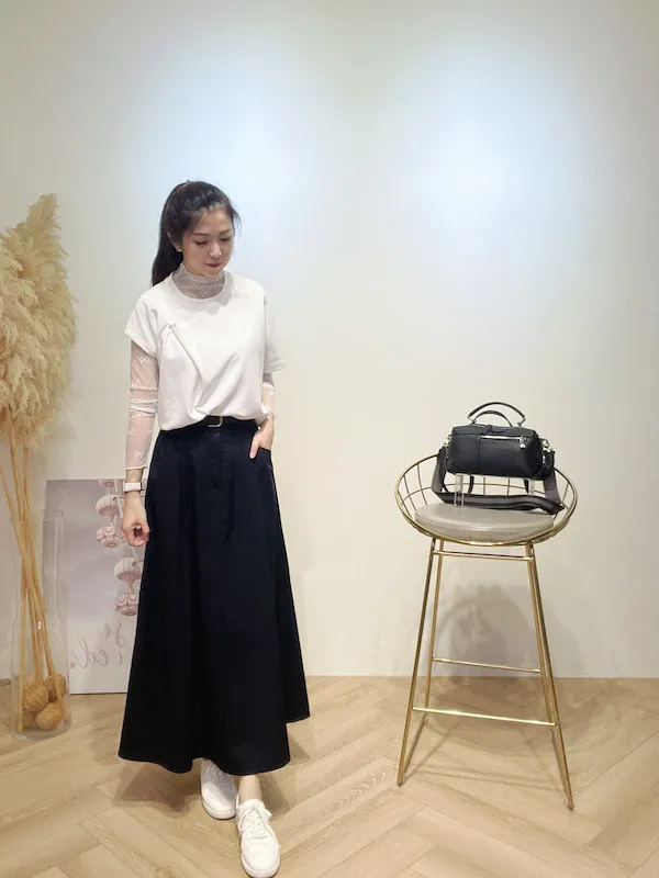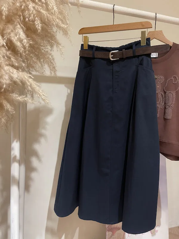 腰帶口袋休閒裙