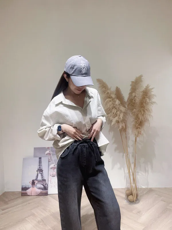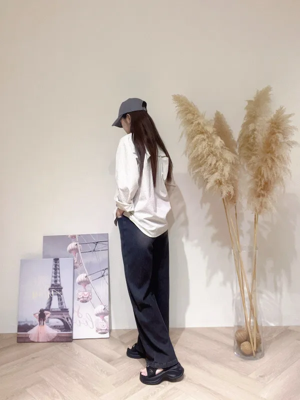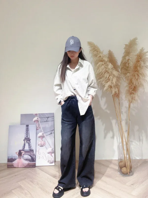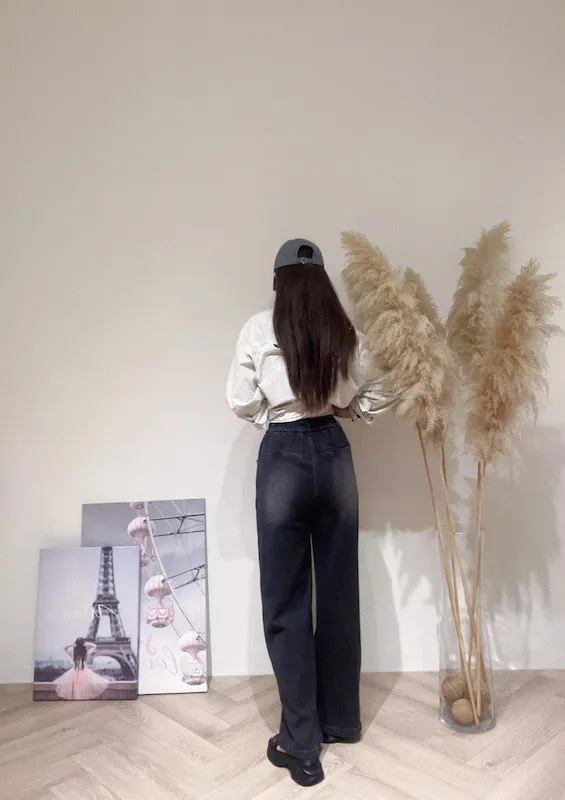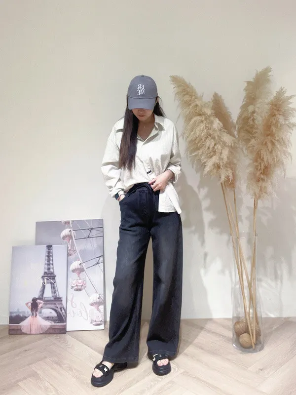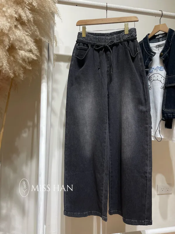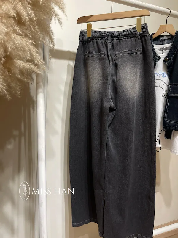 綁繩刷色牛仔寬褲
