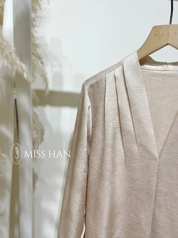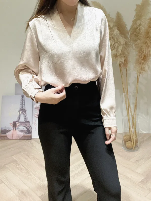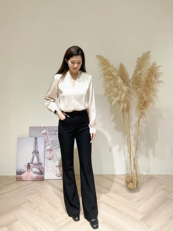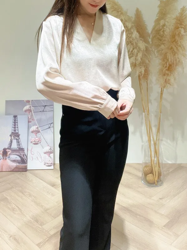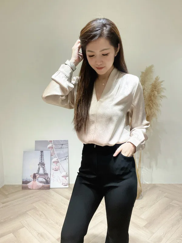 氣質緞面V折領衣