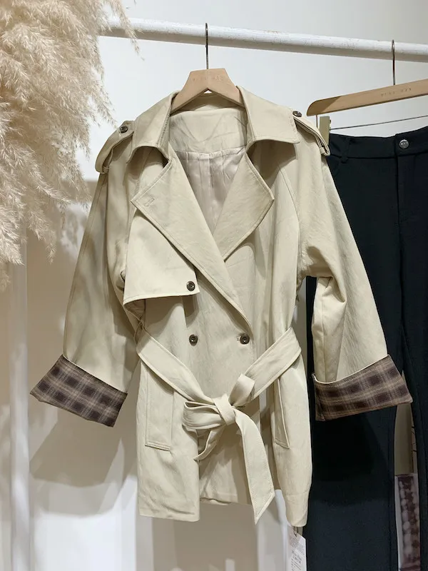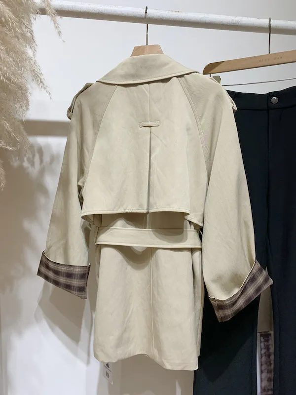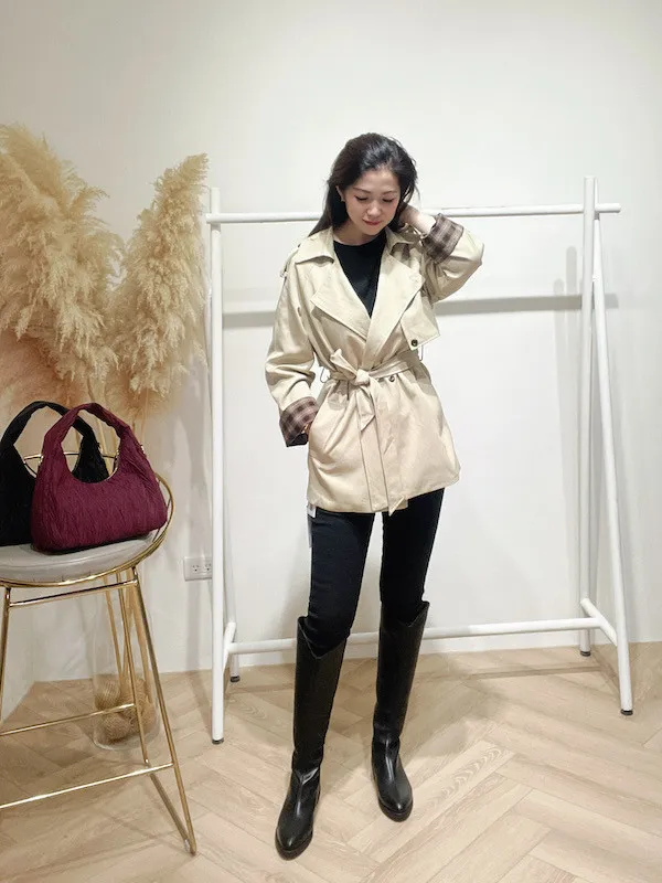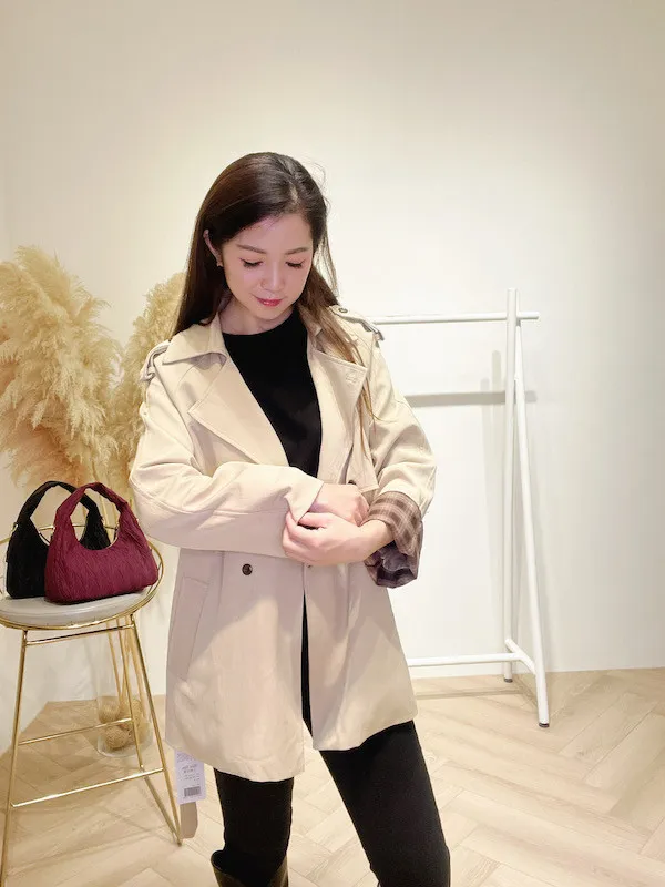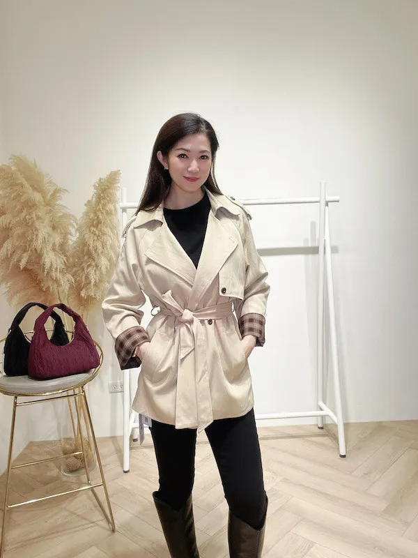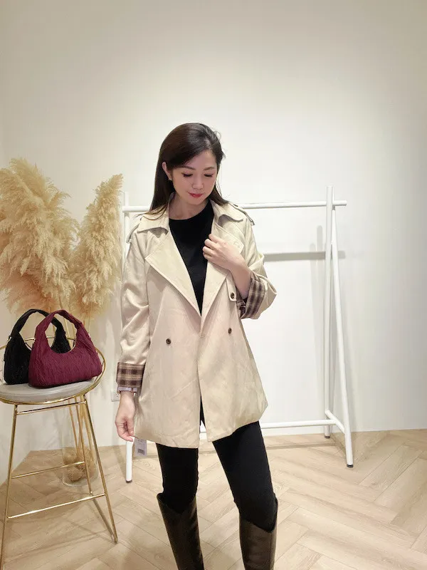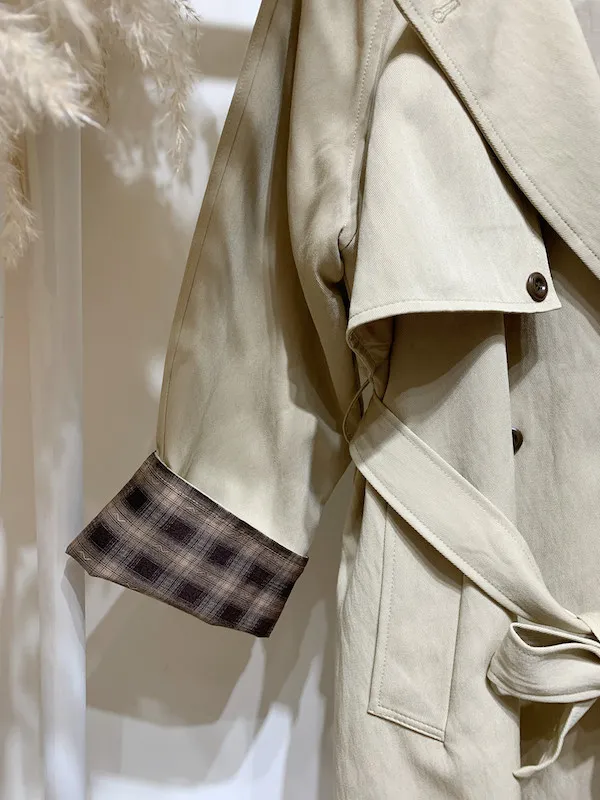 袖折格紋薄風衣