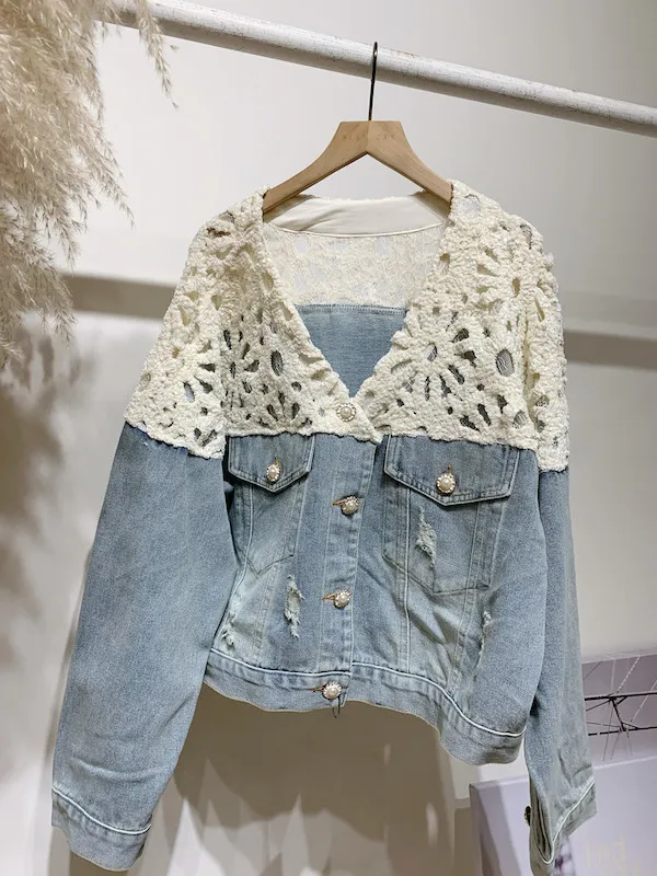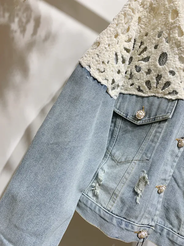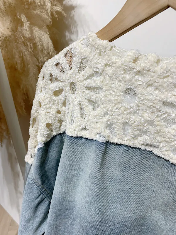 絨面蔞空肩牛仔外套