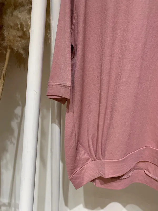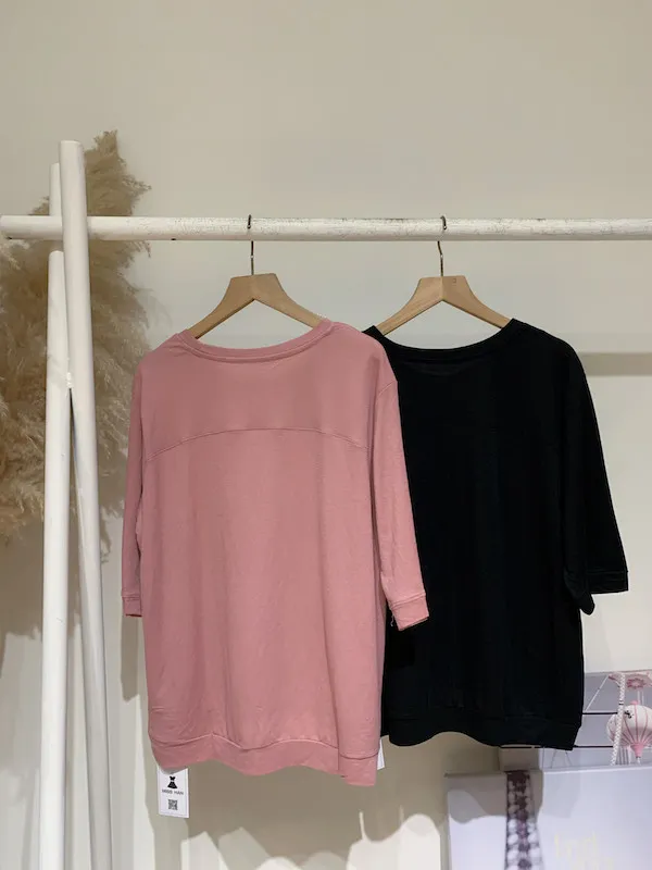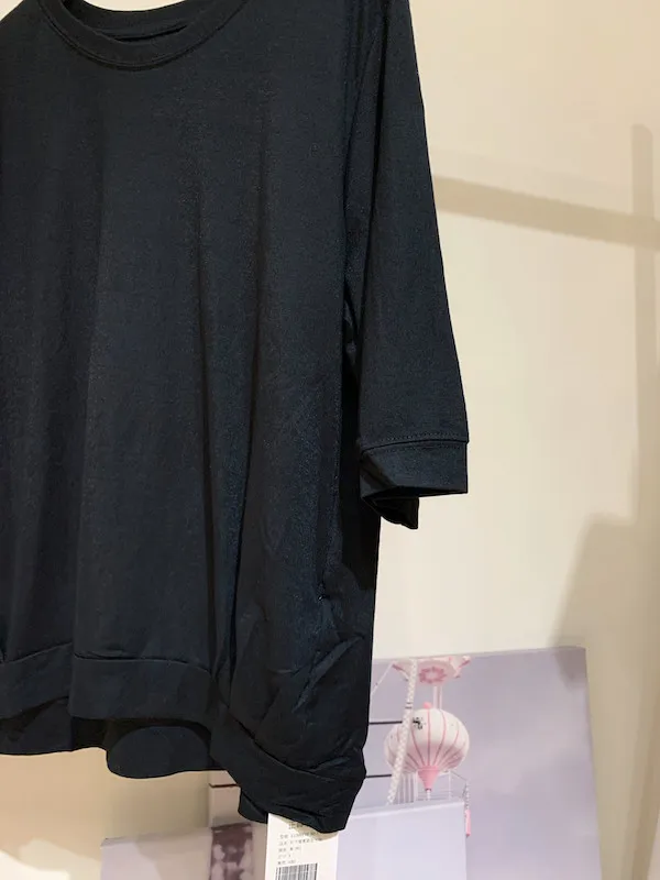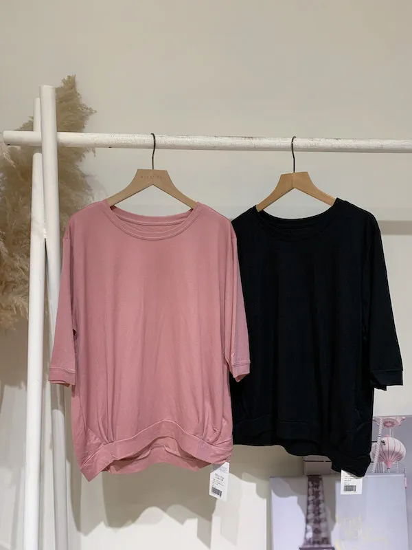 折下擺素面五分袖