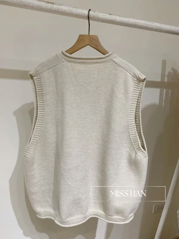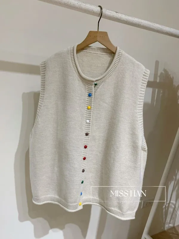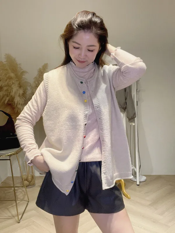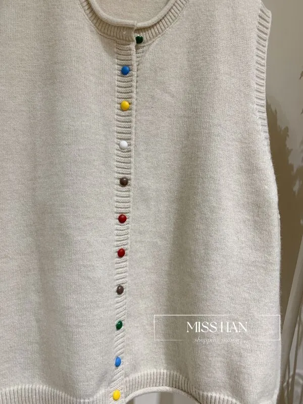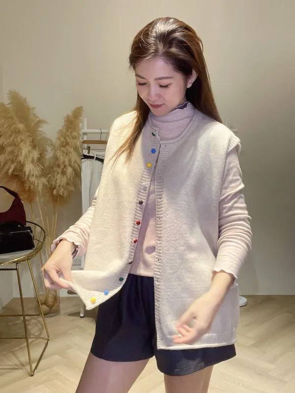 彩釦針織背心