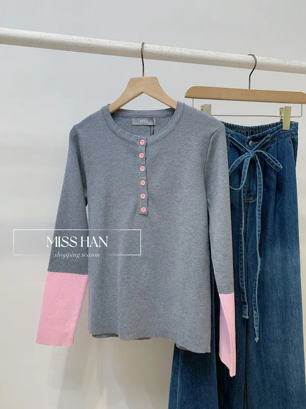圓領撞色上衣