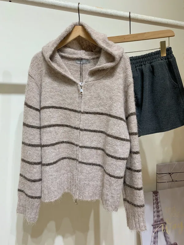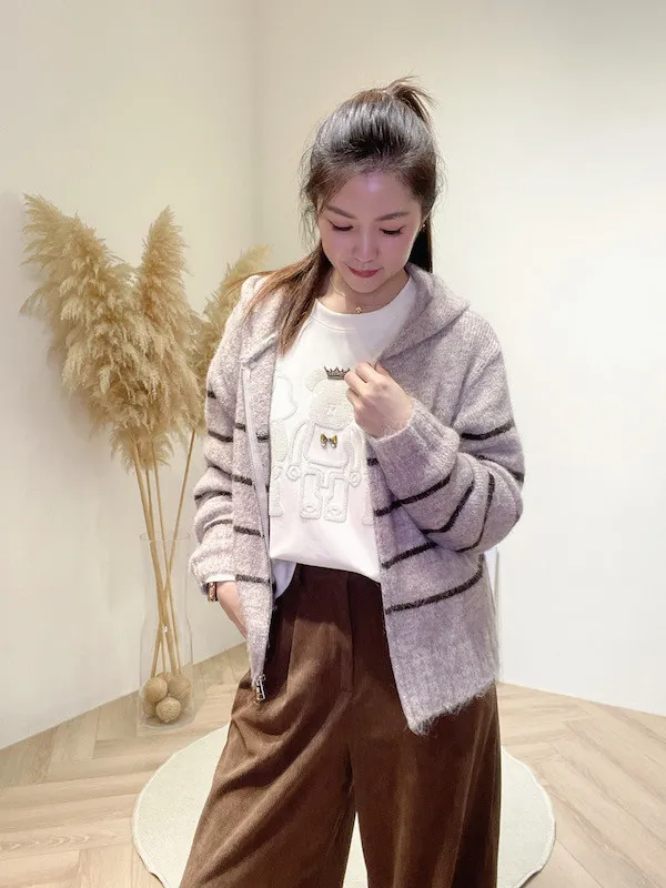 雙拉鍊線條連帽外套