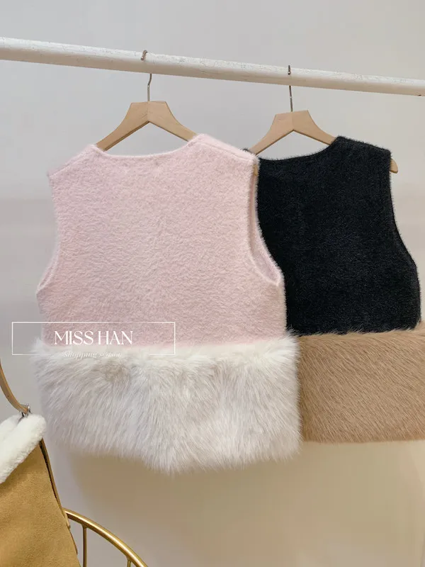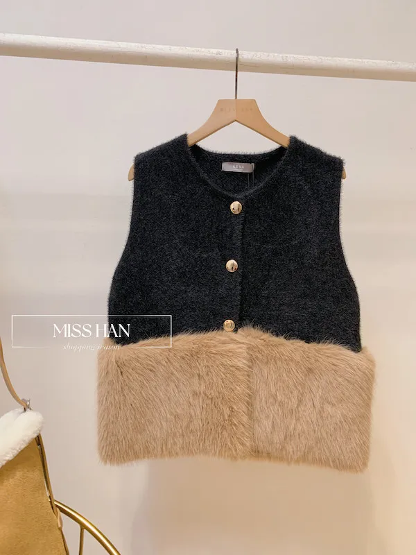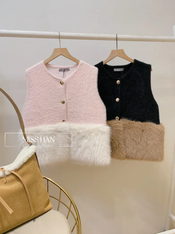 絨毛毛拼接背心