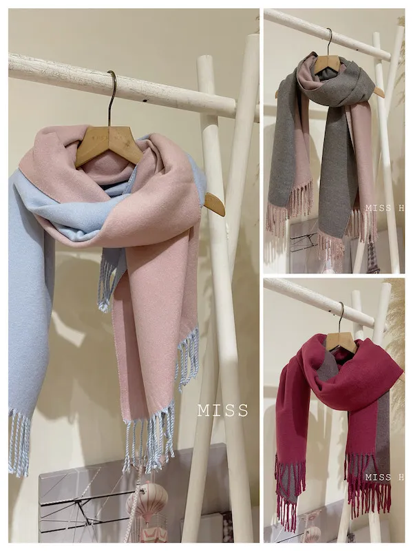 雙面色羊絨圍巾