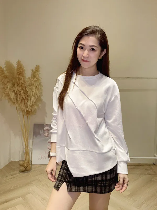 造型斜壓折釦上衣