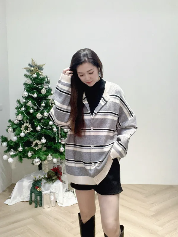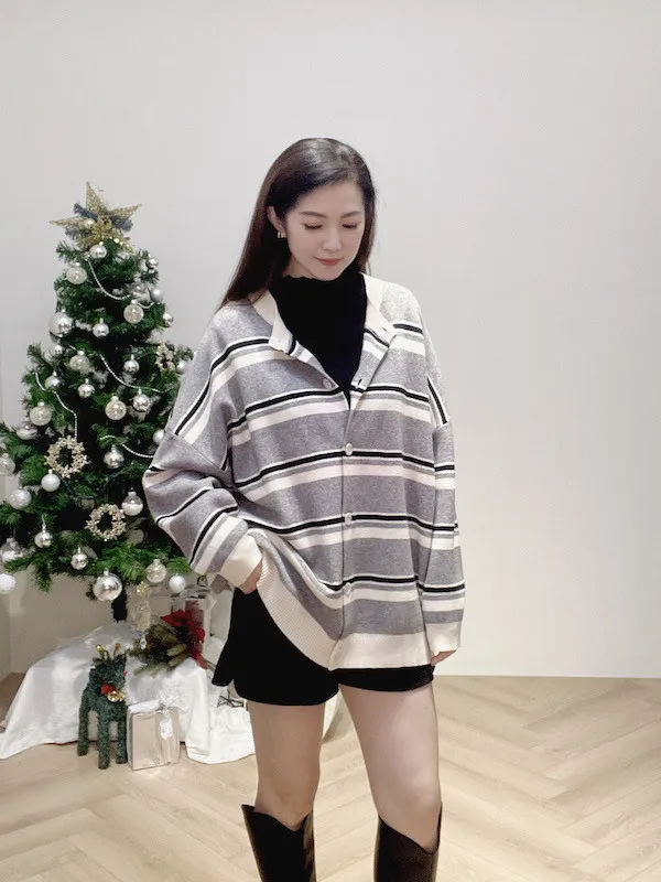 條紋撞色排釦外