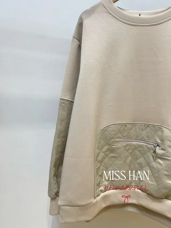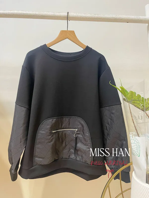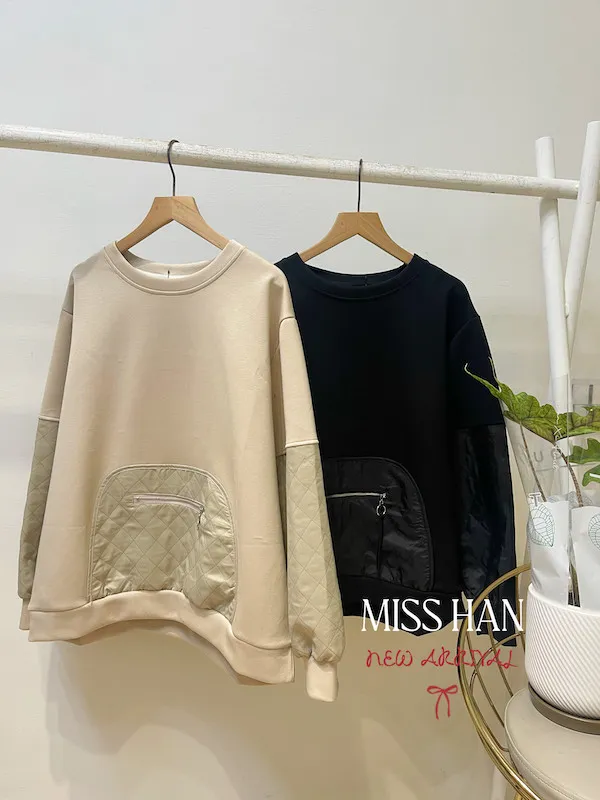 壓格接袖口袋衣