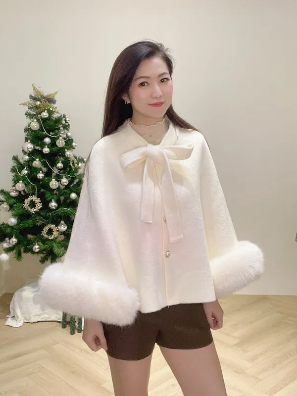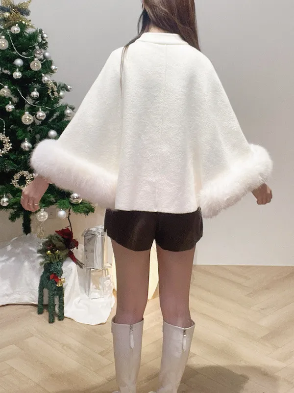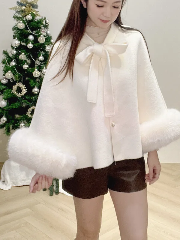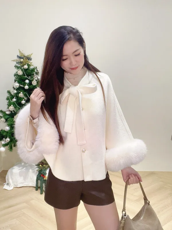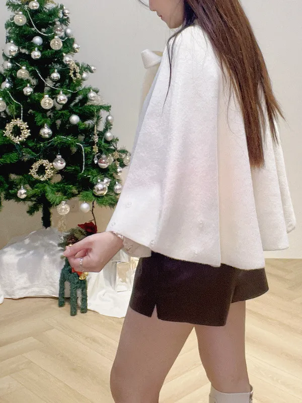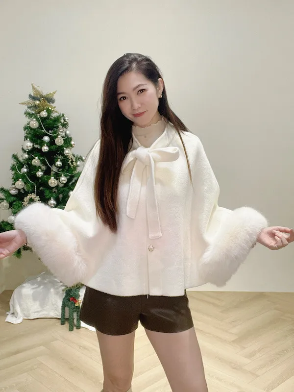 珍珠釦毛袖斗篷