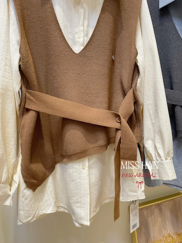背心上有腰帶設計 釦子式的