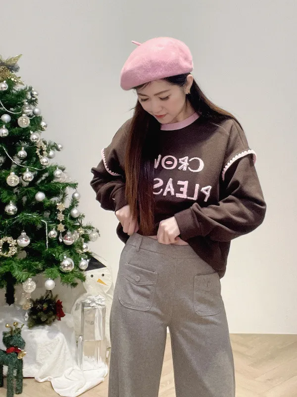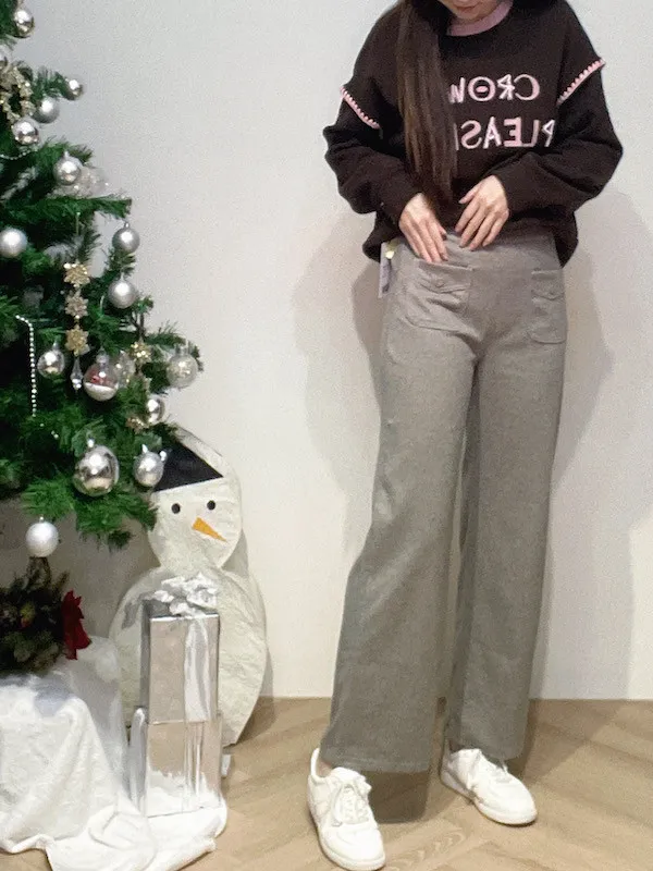 圓釦口袋毛料寬褲