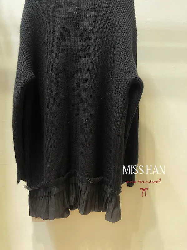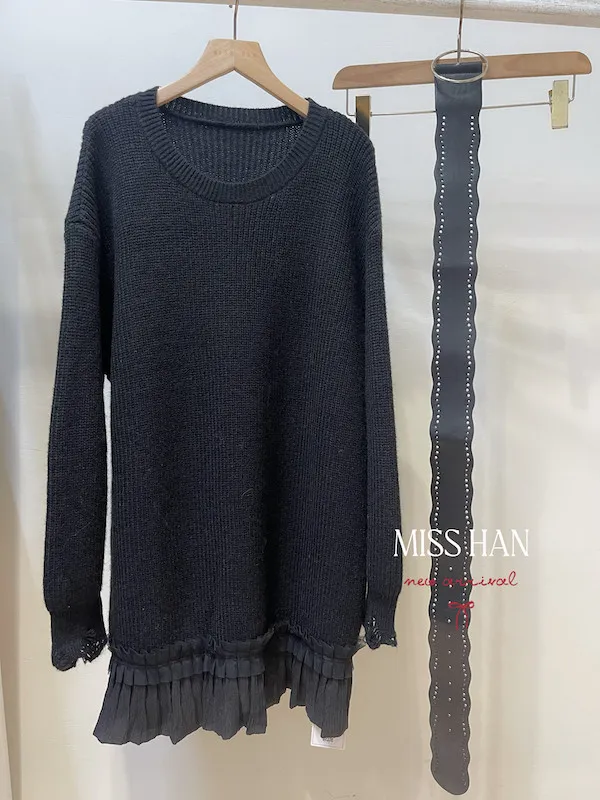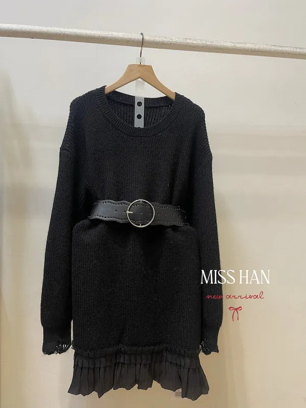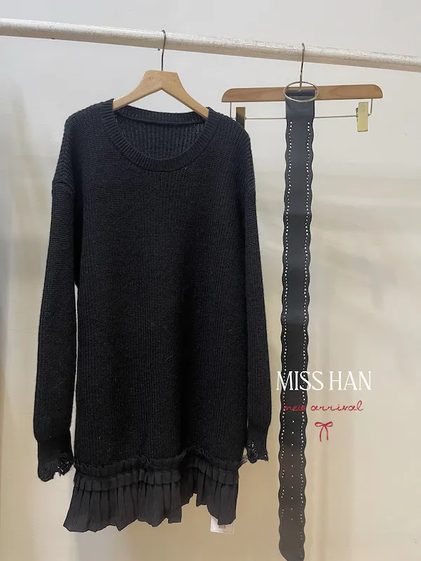 接紗擺針織短洋(附腰帶)