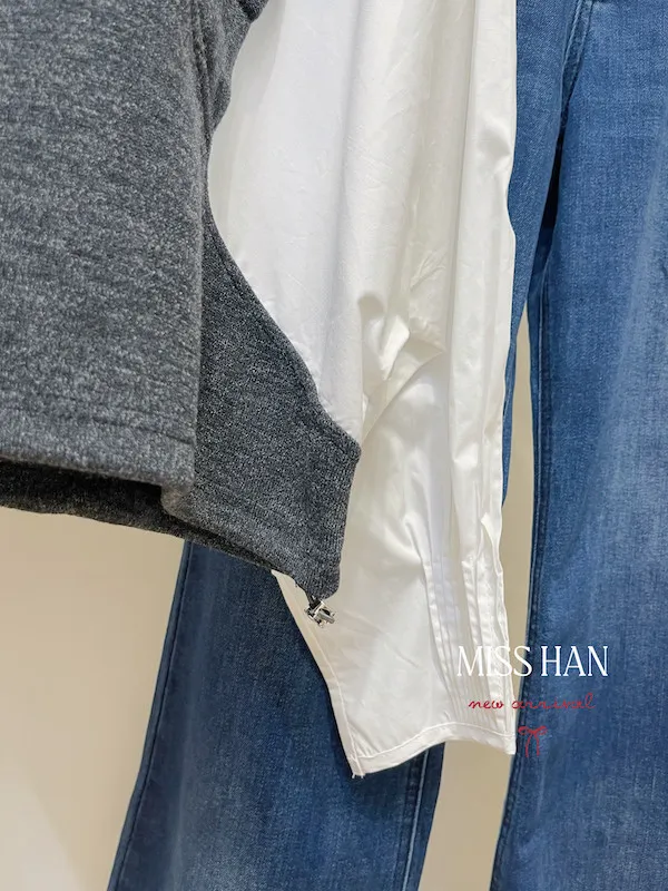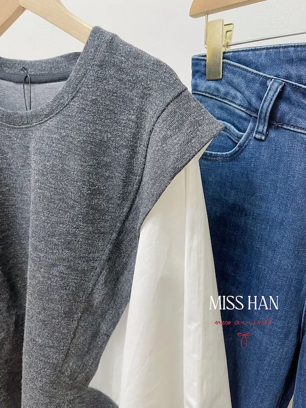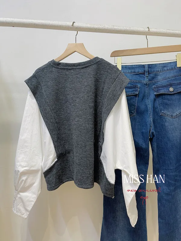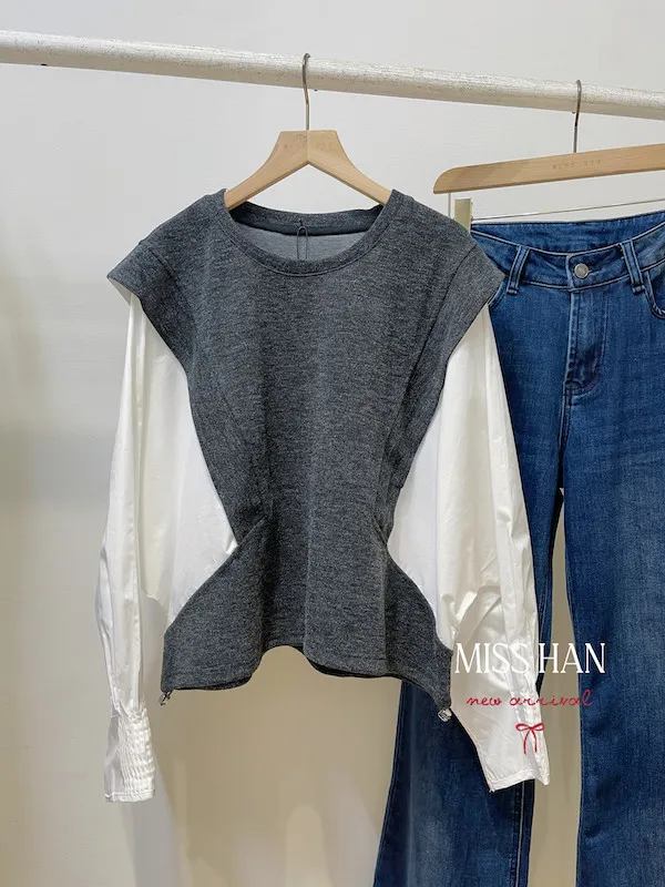 寬袖毛料背心假兩件