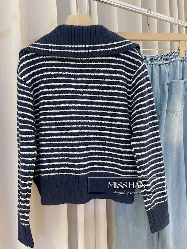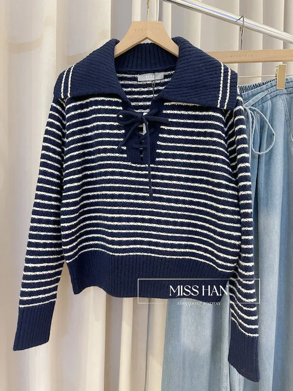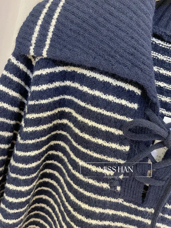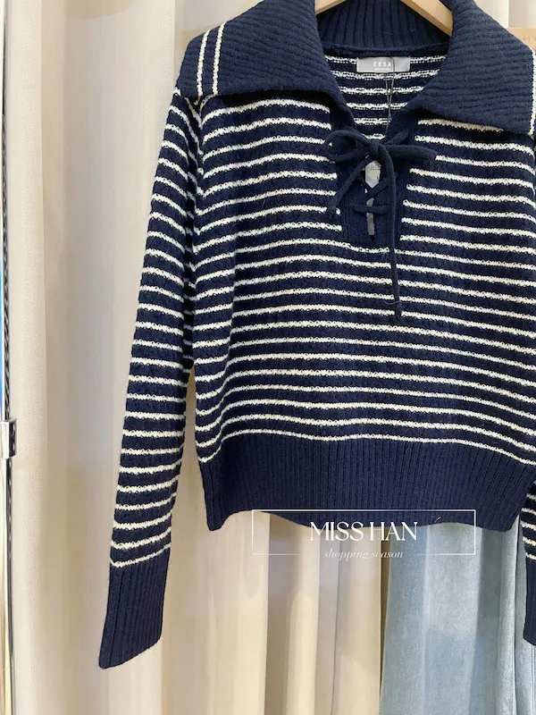 這款綁帶翻領條紋上衣是冬日裡的減齡神隊友!