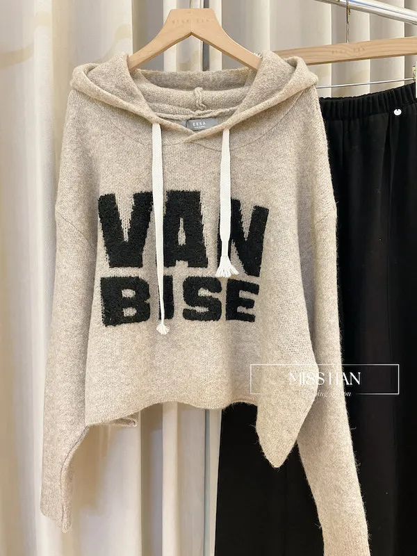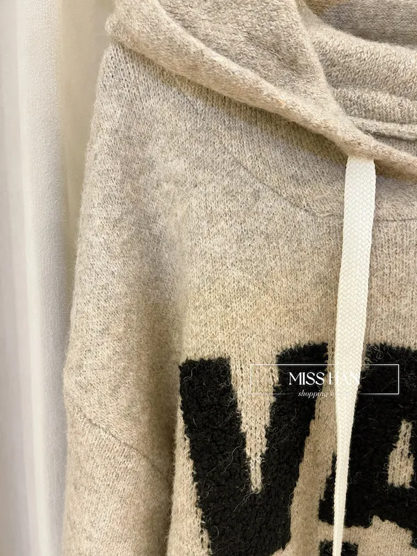 這款連帽字母針織上衣絕對是冬日懶人穿搭的首選