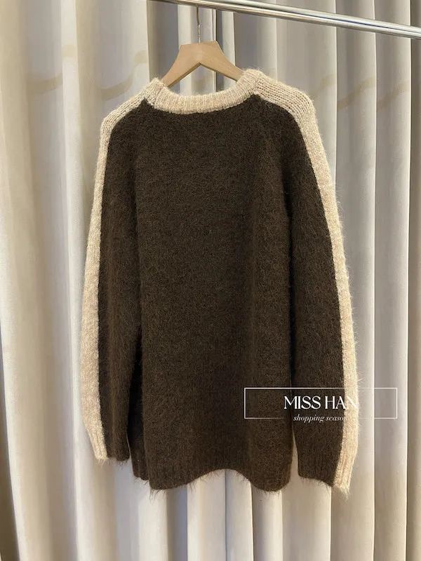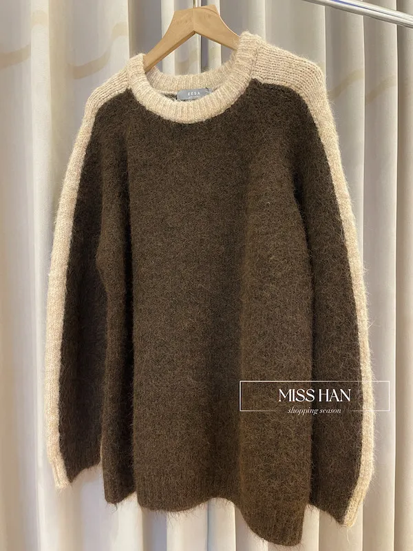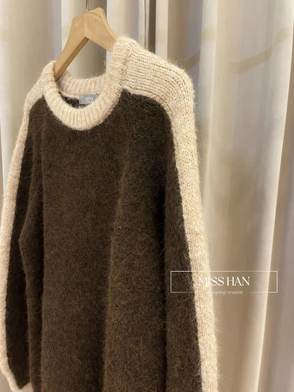 這款撞色馬海毛針織衫是慵懶氛圍感的標配
