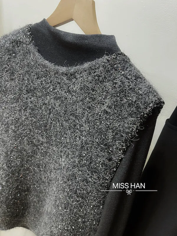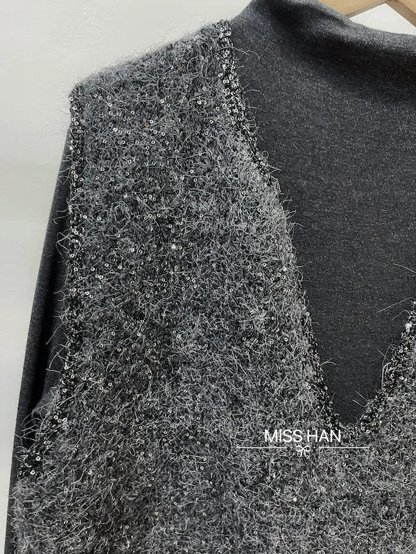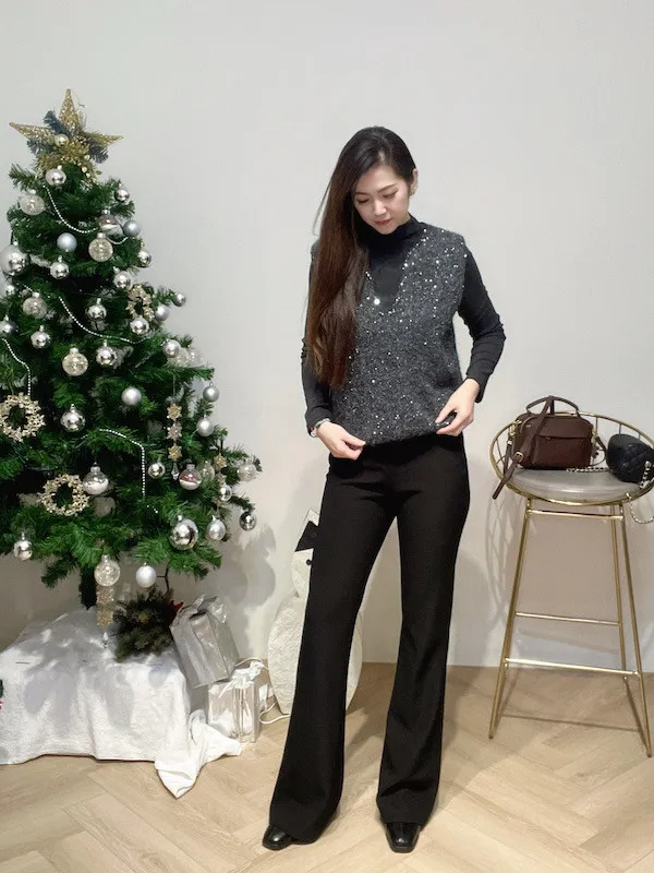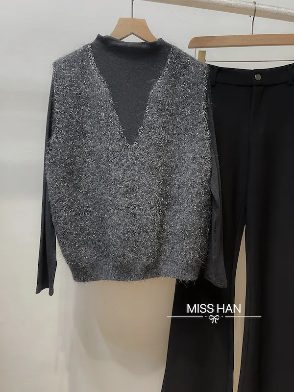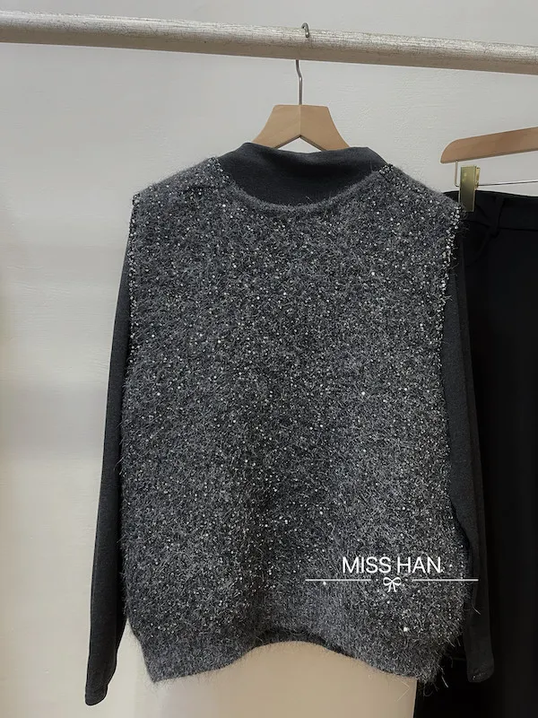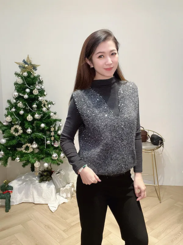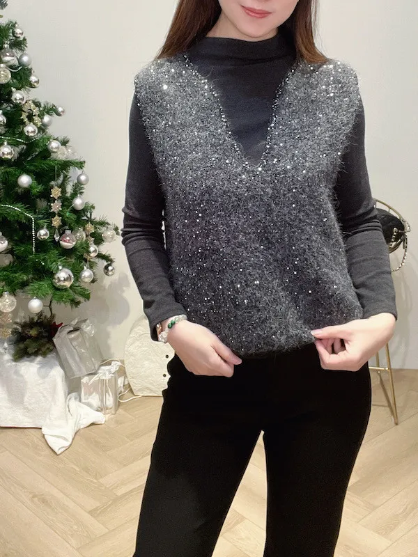V領亮片針織背心二件組
