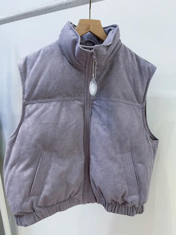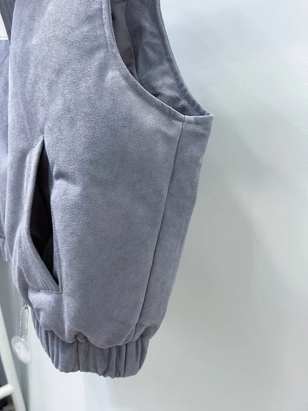 這款羽絨背心採用獨特的麂皮絨感材質