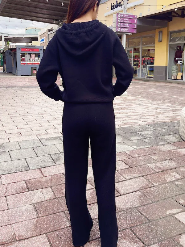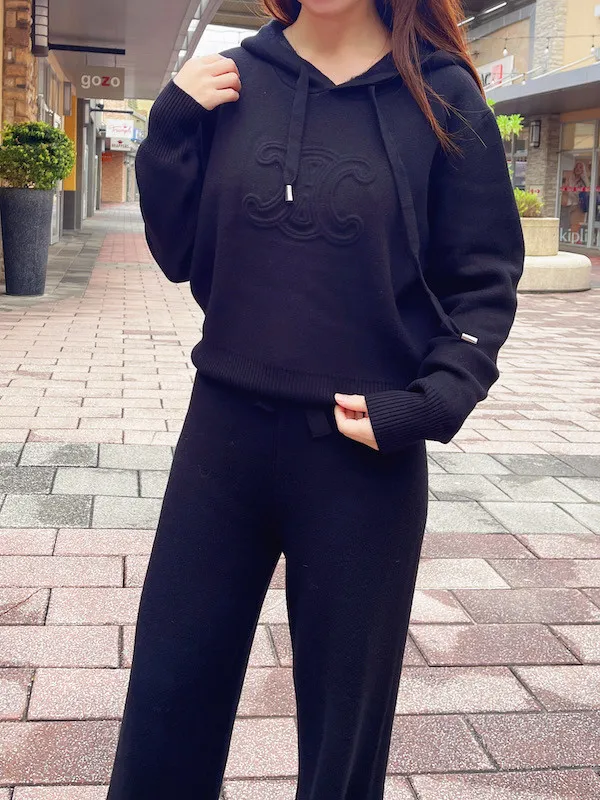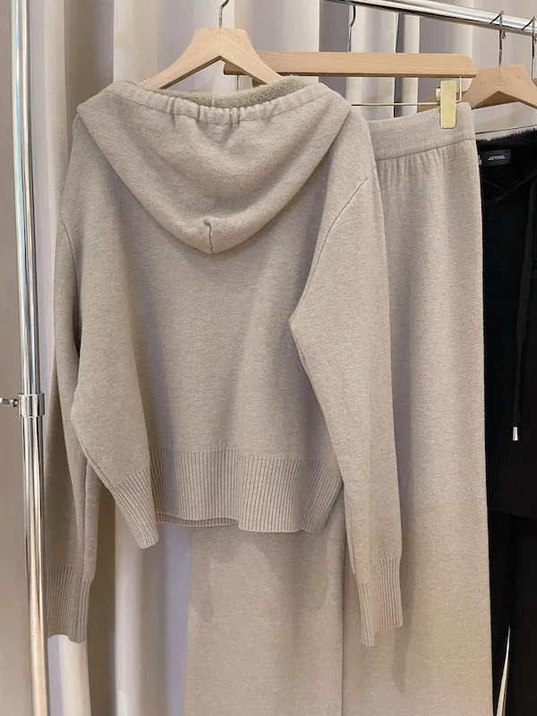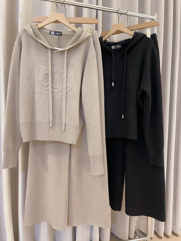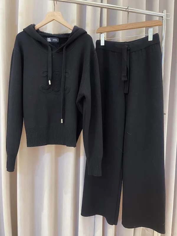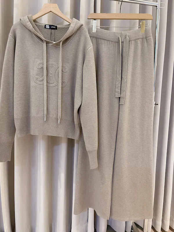 這款浮雕連帽針織套裝是追求高級懶人風的必入款!