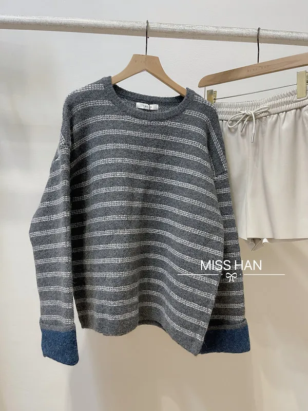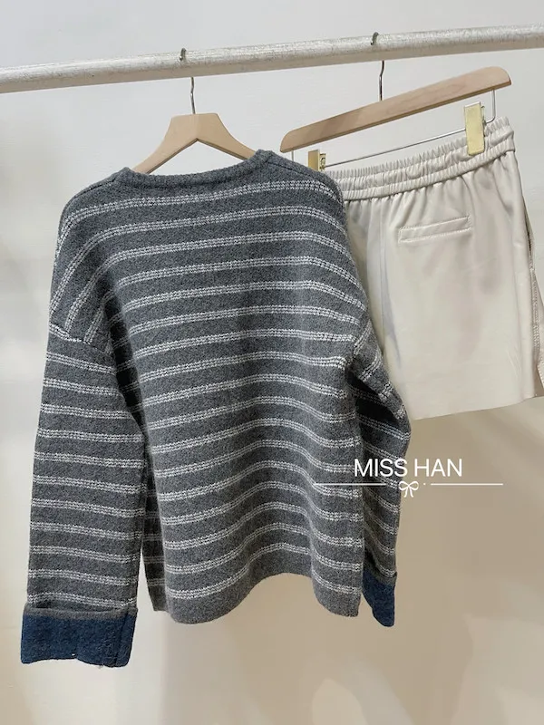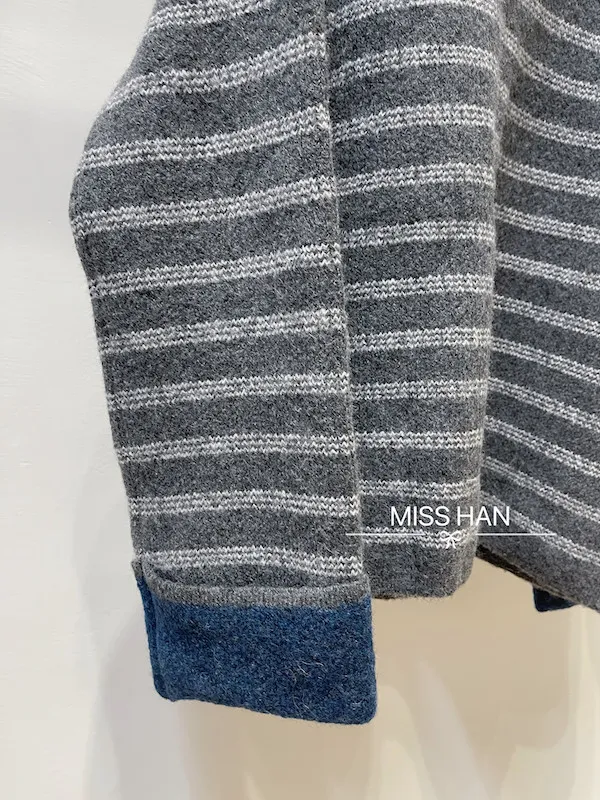 袖撞色條紋針織