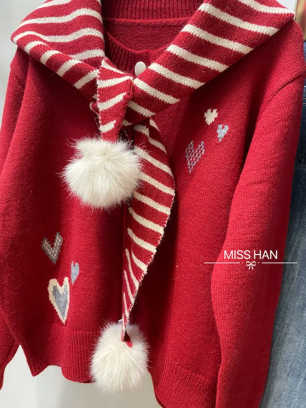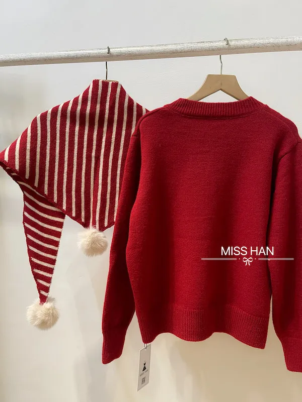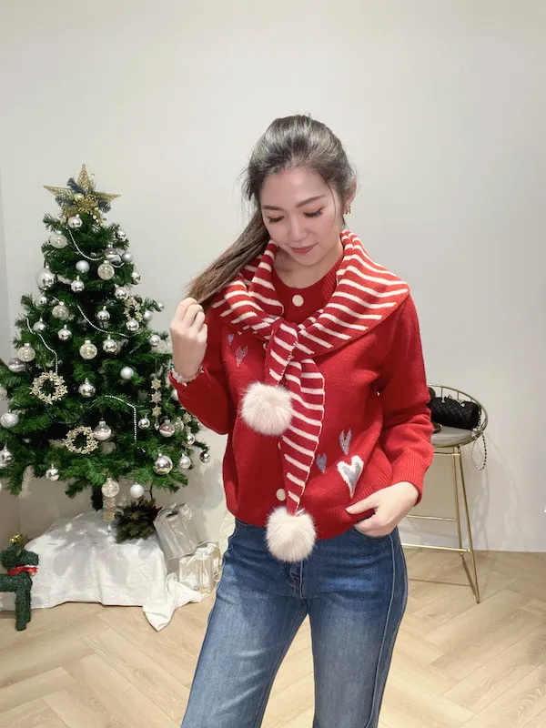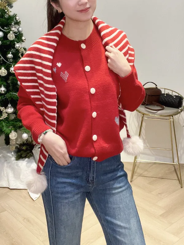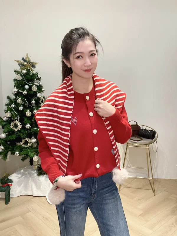 搭配條紋針織毛球