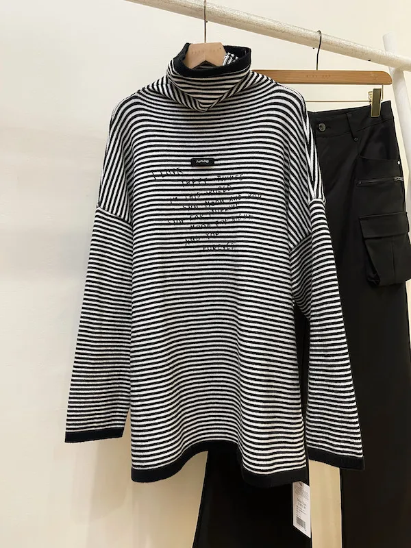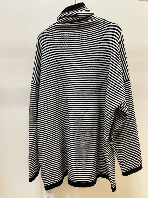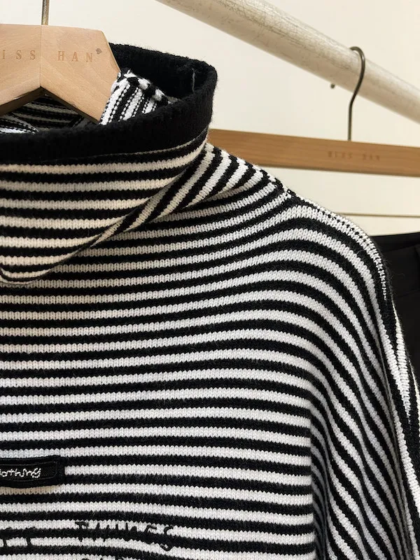 這款經典的黑白條紋高領針織衫