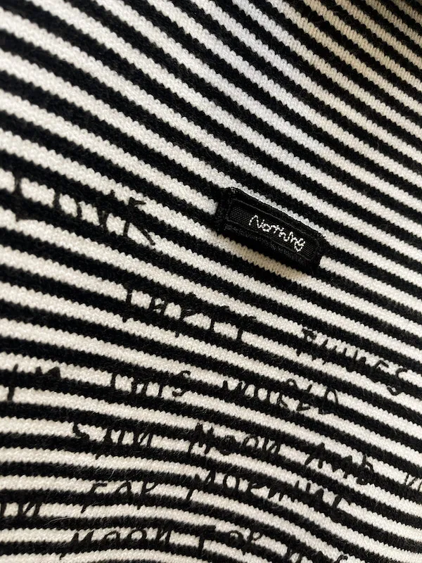 胸前飾有獨特的手寫文字圖案貼布