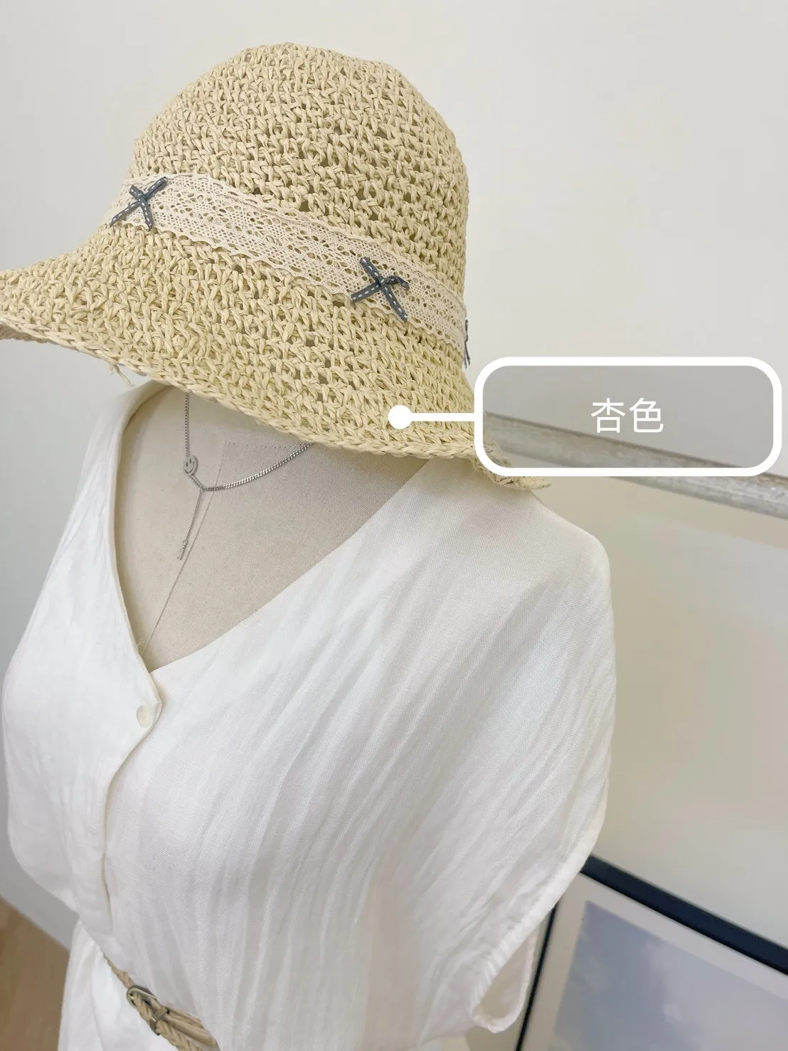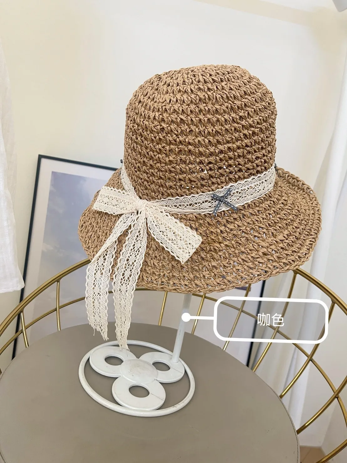 夏日韓系蕾絲編織草帽 盛夏美拍神器!這款草帽結合優雅蕾絲與細緻蝴蝶結,寬簷設計遮陽又顯臉小提供氣質杏與經典咖兩色,不論度假長裙或休閒穿搭都完美駕馭夏天出遊,就靠它輕鬆打造輕盈韓式氛圍感,優雅防曬不馬虎!
