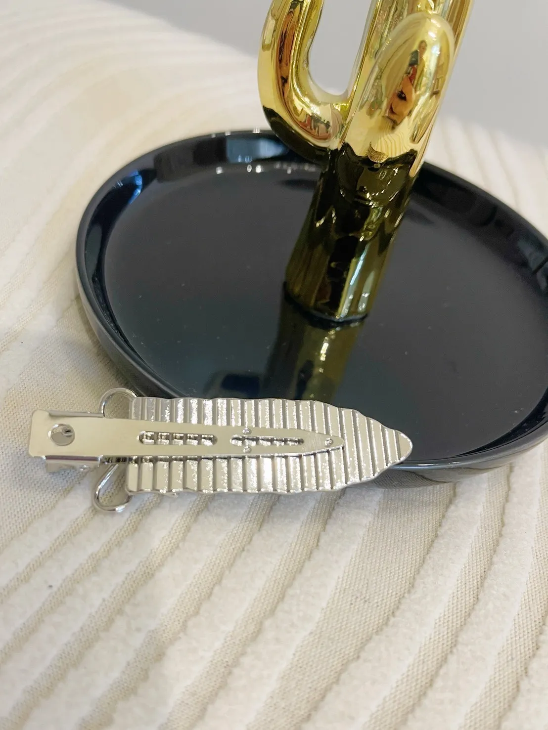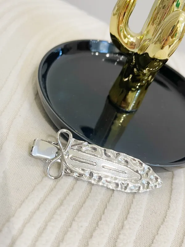 搭配獨特錘目紋設計的蝴蝶結髮夾,俏皮又不失質感