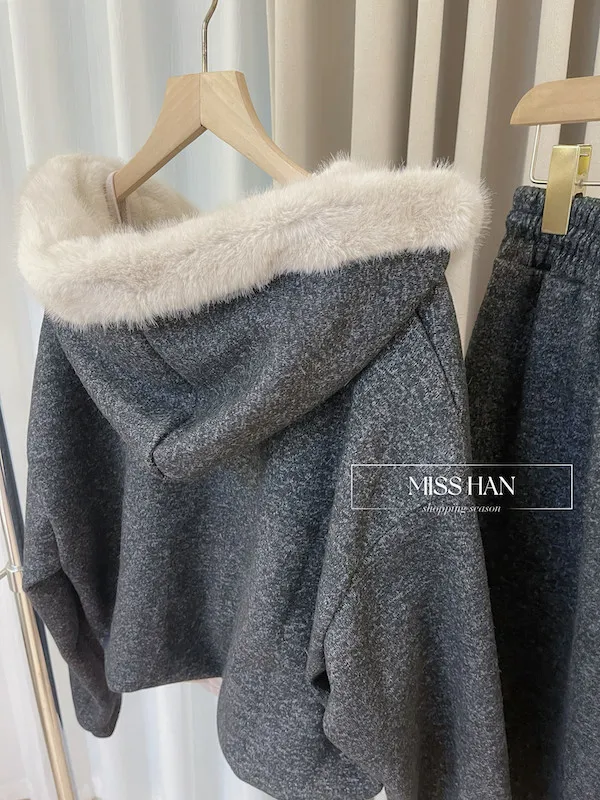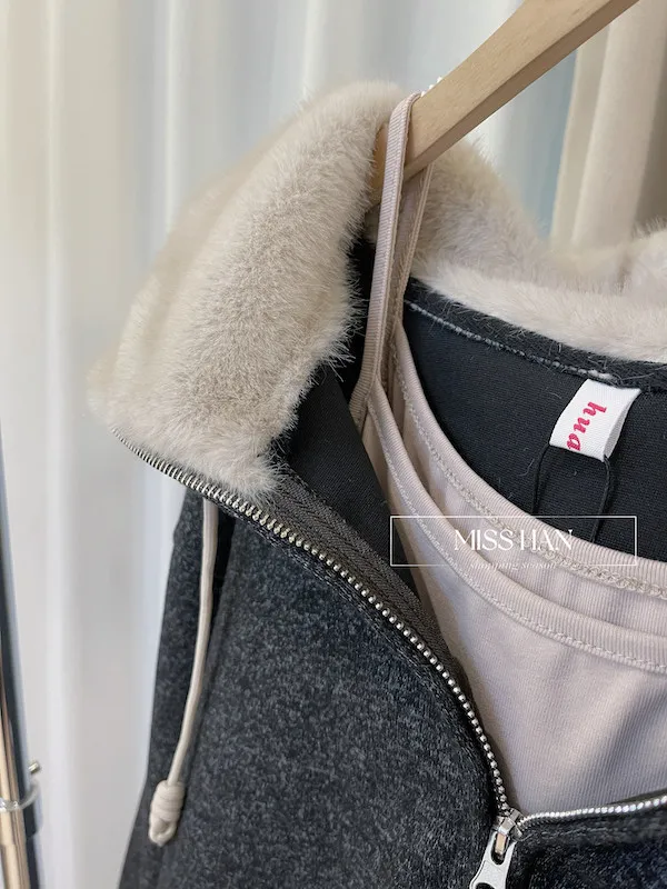 精緻的毛絨大連帽不僅保暖,更襯托出迷人的小臉視覺