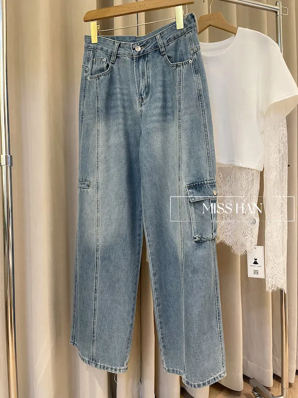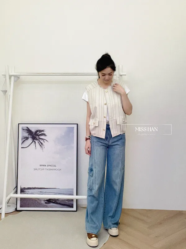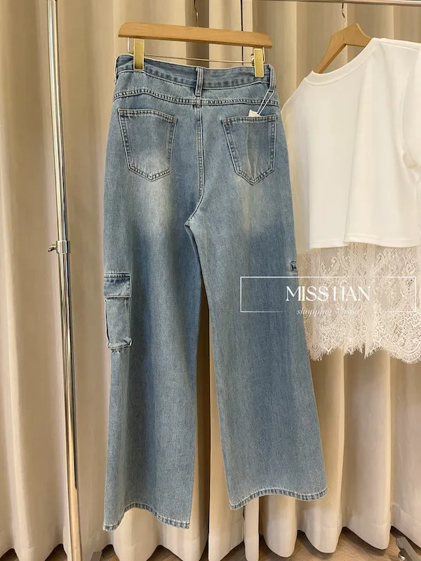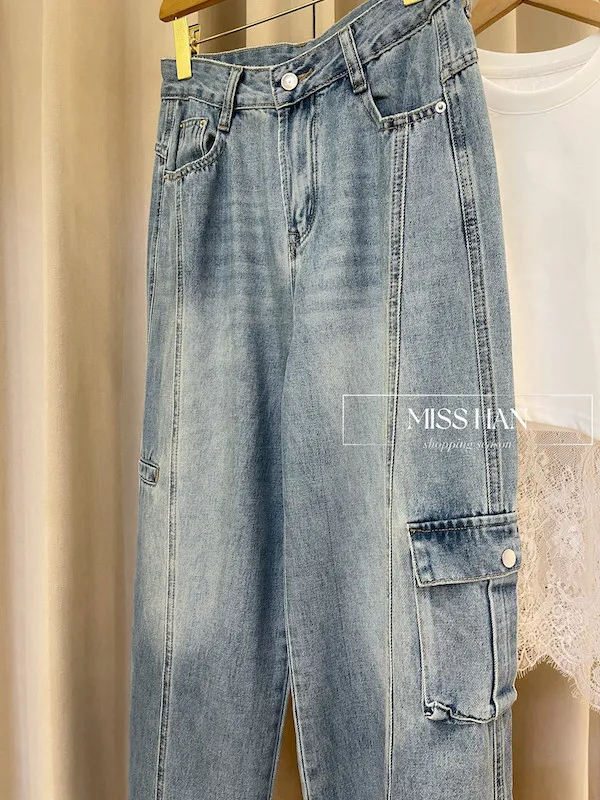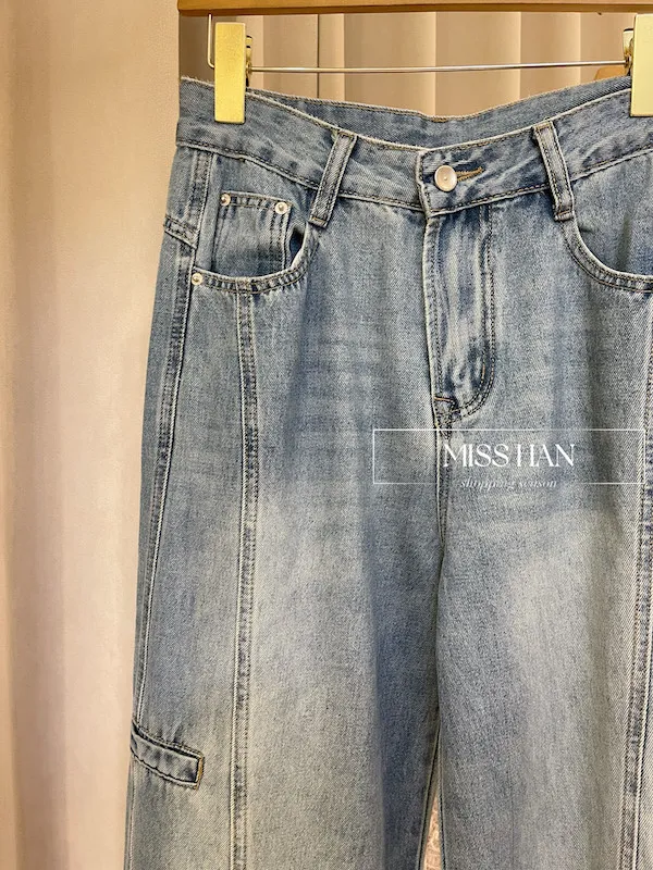 這款率性工裝:中線顯瘦寬管牛仔褲