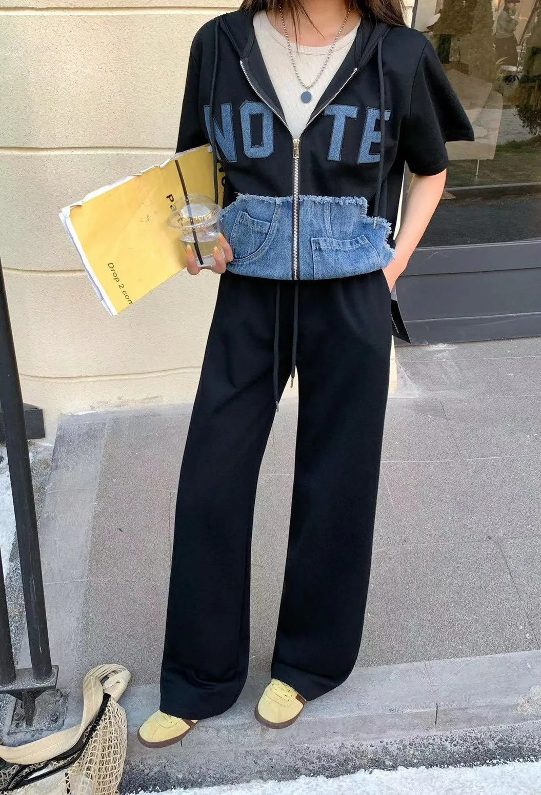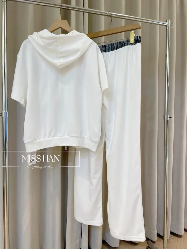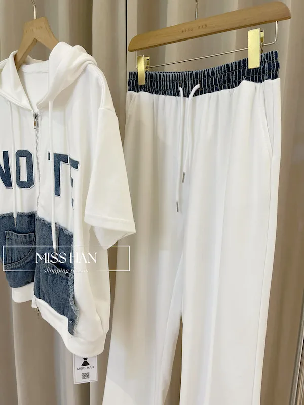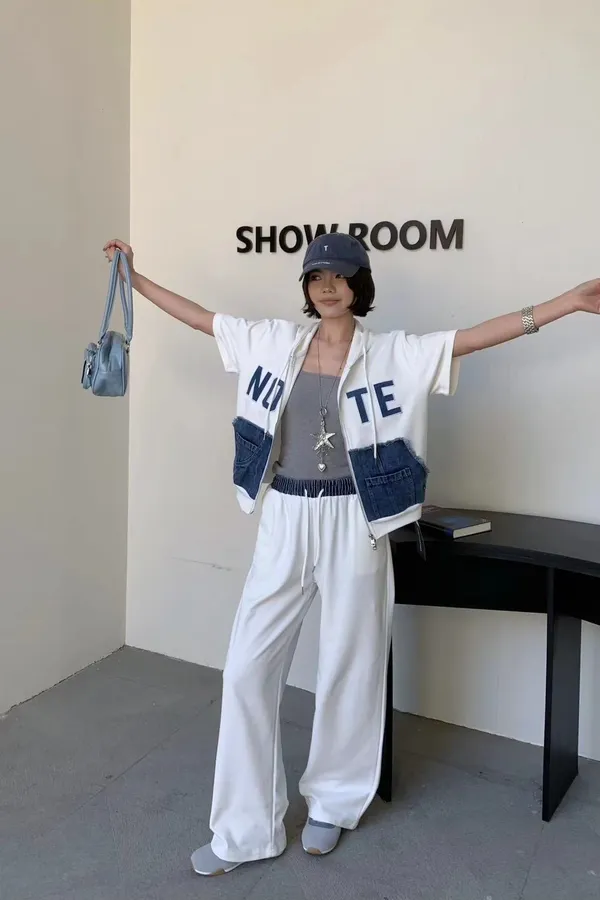 修身細節: 抽繩連帽設計能修飾肩頸線條,搭配束口褲剪裁,視覺上俐落顯瘦不臃腫。