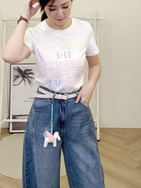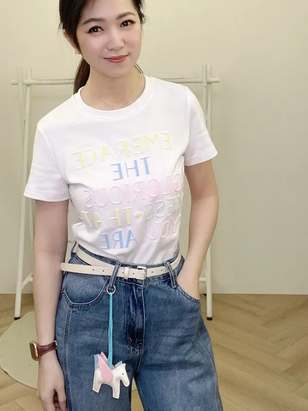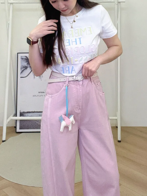 隨褲附贈白色皮帶與質感小馬吊飾,CP值極高