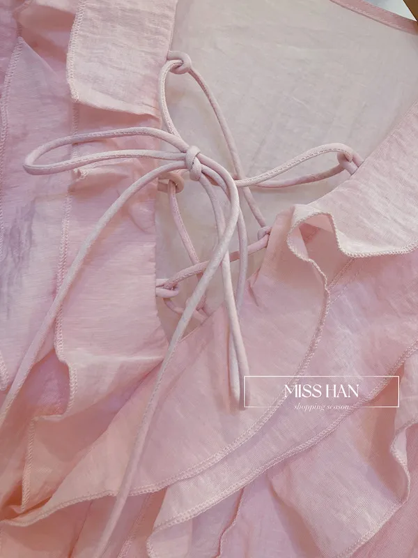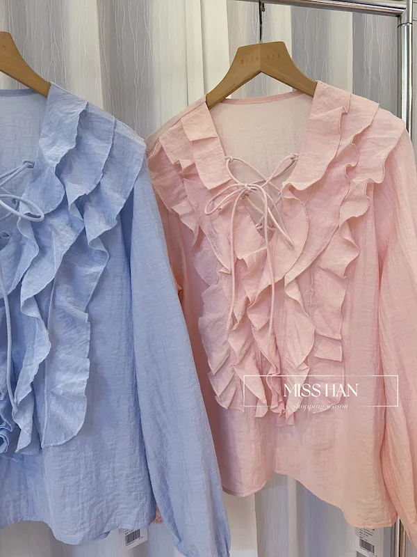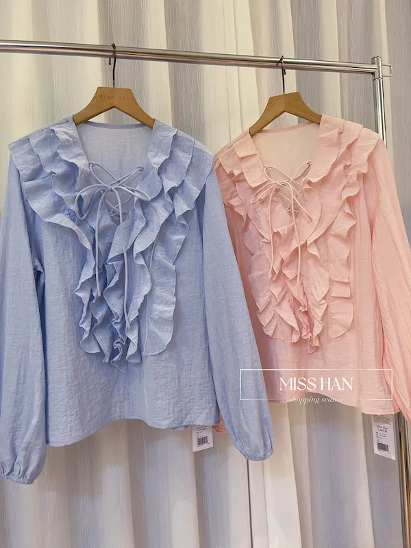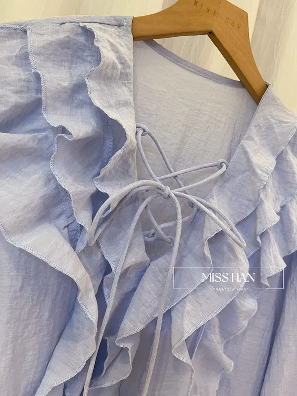 這款法式浪漫荷葉領棉麻上衣