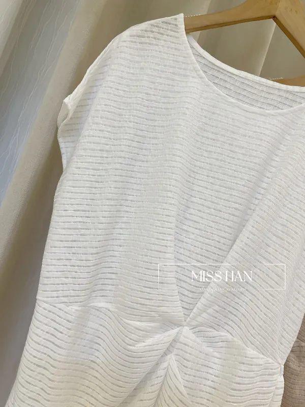這款輕盈微透感木耳邊彈性上衣,是妳衣櫃裡必備的「高質感底層」