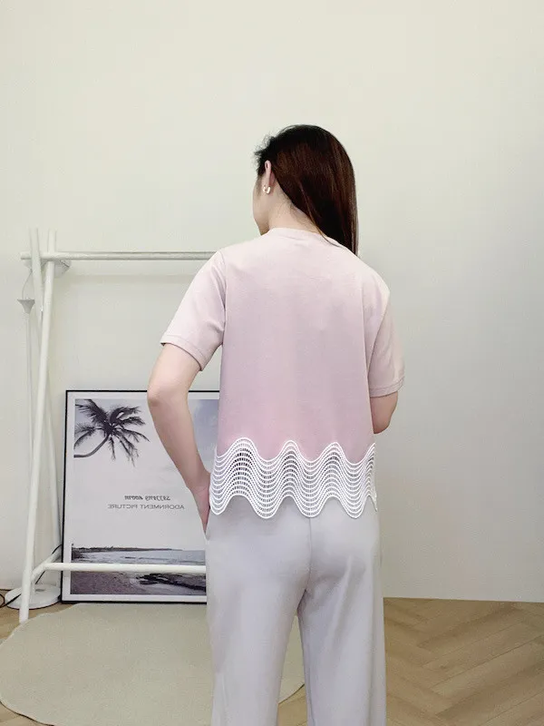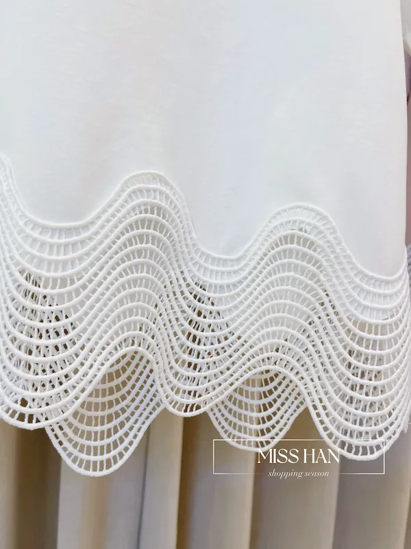 立體波浪下擺: 採用獨特的幾何鏤空織法,交織出優美的波浪弧度,為視覺增添輕盈的層次感。