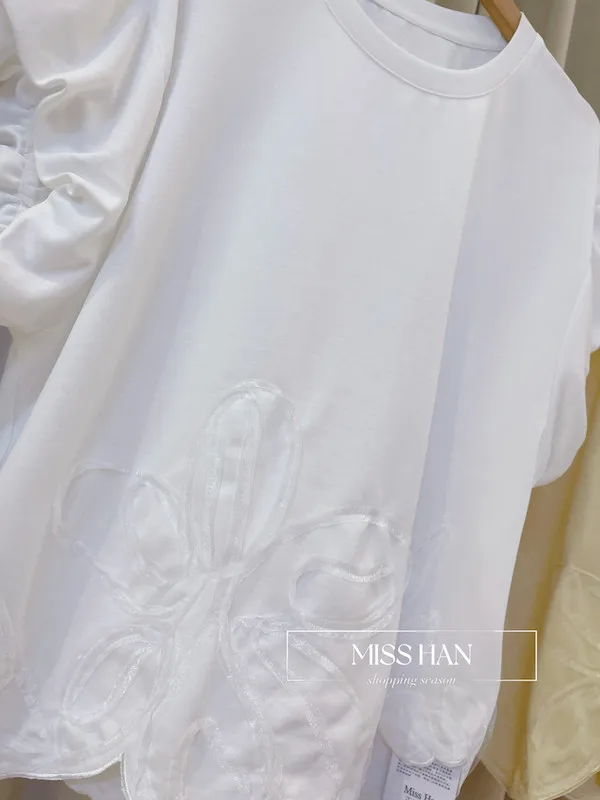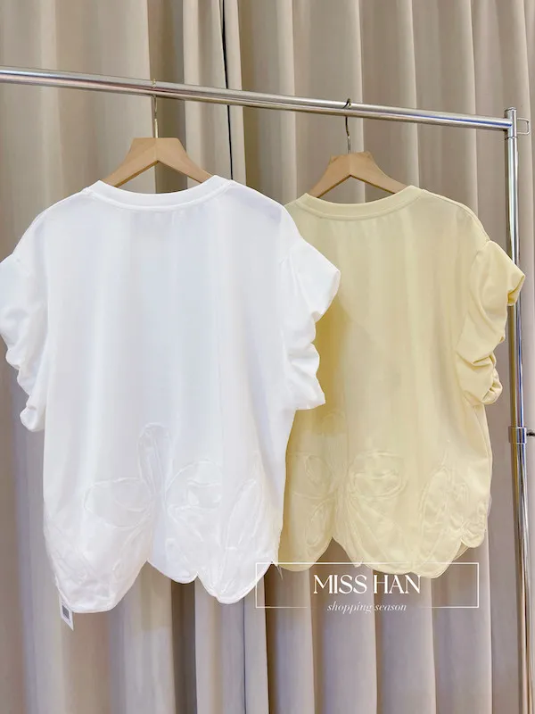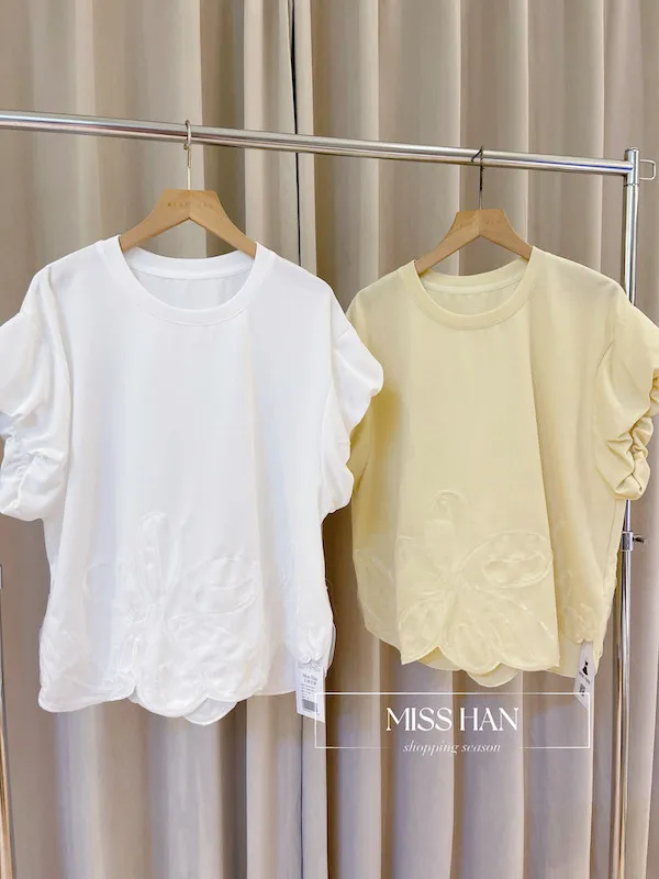 這款立體大花朵澎袖上衣展現了極致的法式浪漫與韓系甜美