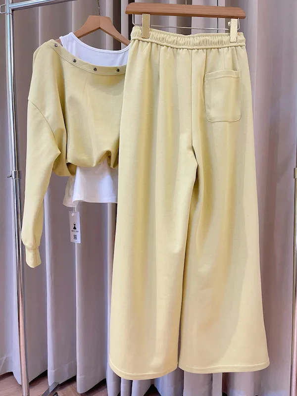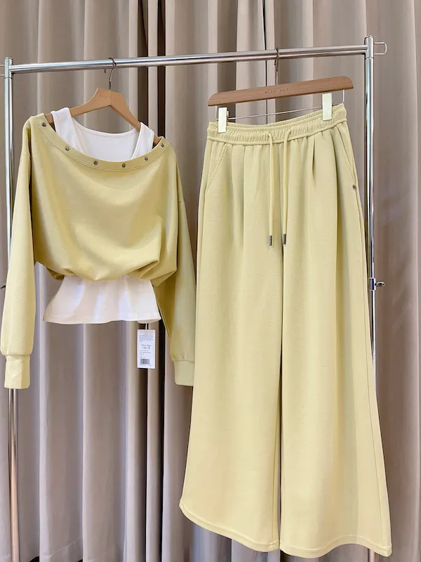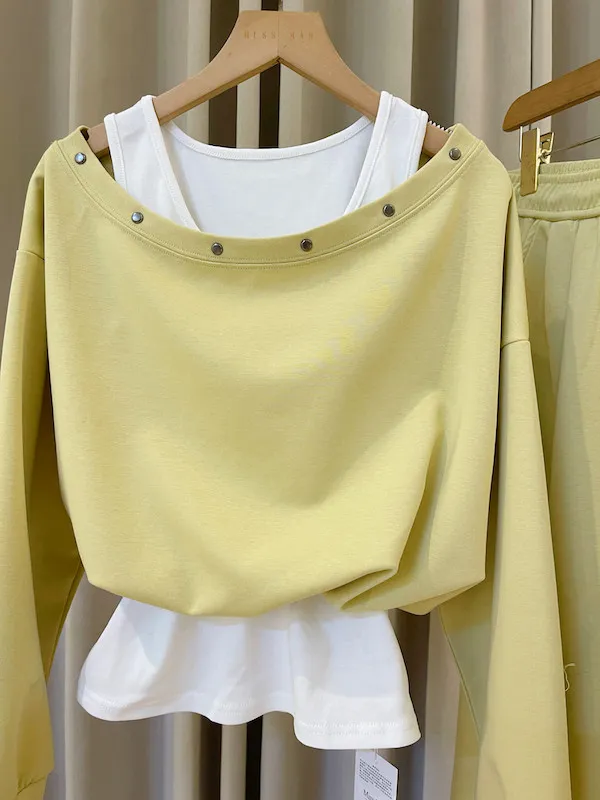 💛 慵懶美學首選!層次感金屬扣棉質套裝