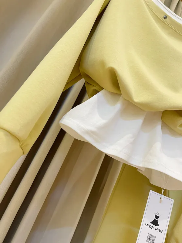 這款套裝是懶人時髦的救星!假兩件設計輕鬆穿出層次感,領口的金屬排扣為簡約版型增添精緻細節。