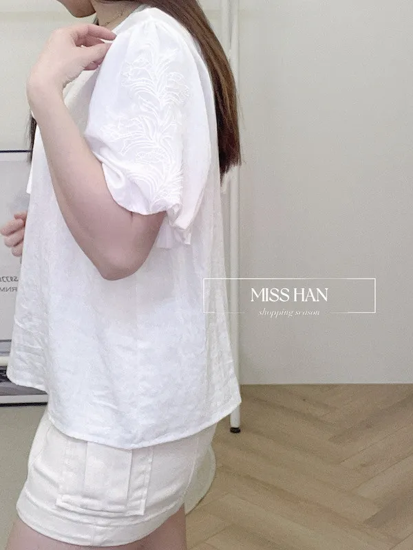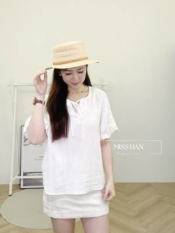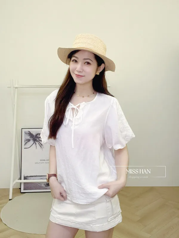 ✨ 質感天花板!精緻刺繡繫帶棉麻上衣
