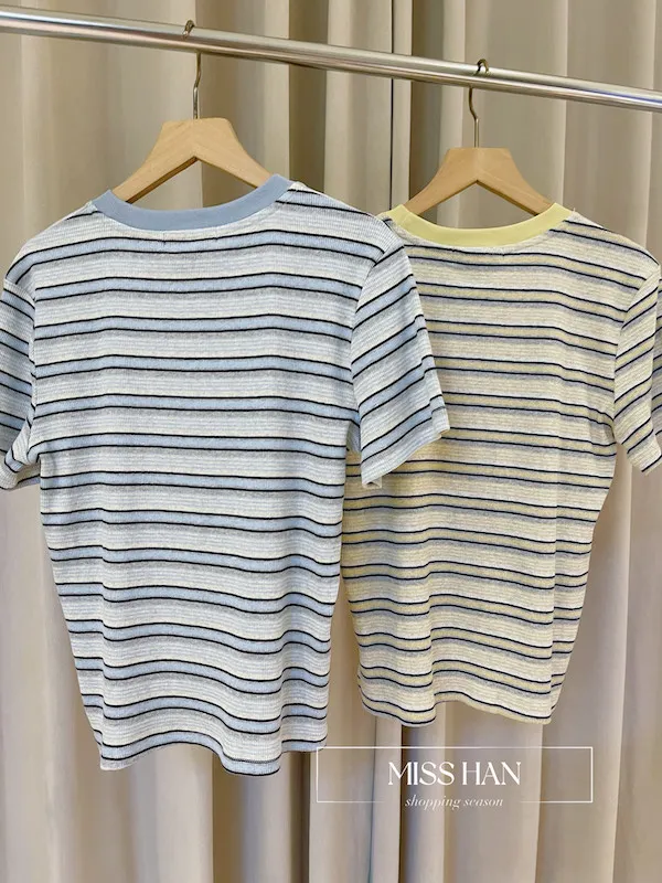 日常穿搭必備!這款條紋 T 選用柔軟高彈性棉質面料親膚舒適,穿著無束縛感經典細條紋設計,耐看又修飾身形。