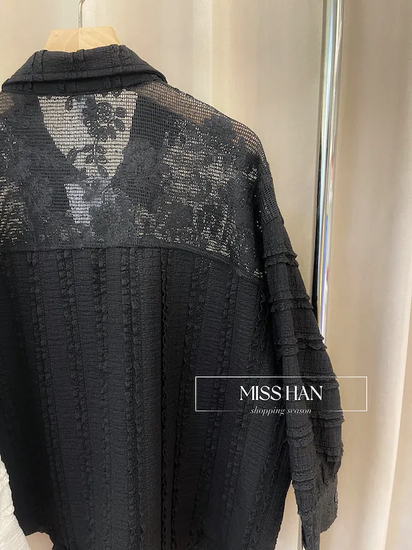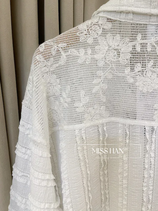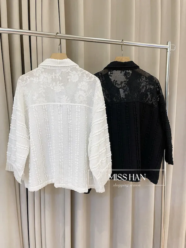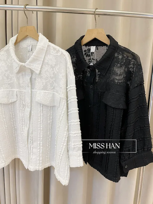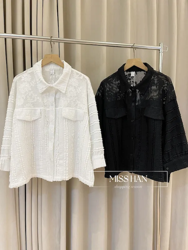 打造優雅法式風情!精緻的立體編織蕾絲面料親膚且富有極佳彈性,穿著舒適不緊繃簡約襯衫領與寬版下擺,完美修飾身型比例顯瘦不失造型感無論內搭素 T 或單穿,都能輕鬆穿出高質感的時髦風格共有清爽白與經典黑兩色可選,立即入手,展現妳的獨特品味!