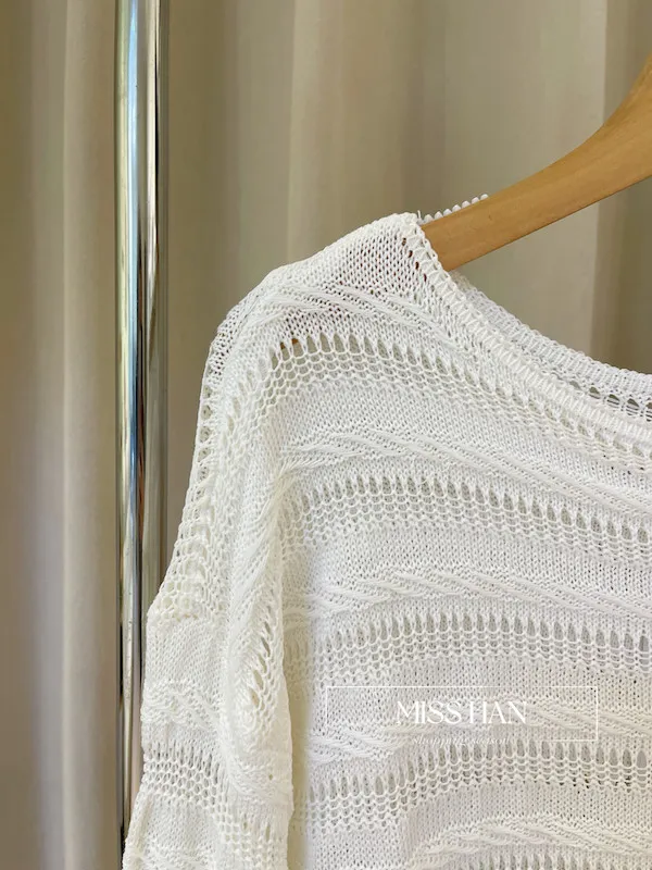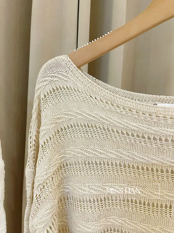 溫柔法式:木耳邊鏤空點點針織上衣