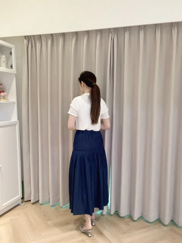 精選優質牛仔布料,厚實且富有質感,百褶工藝整齊劃一,帶來極佳的立體層次感和動感裙擺。