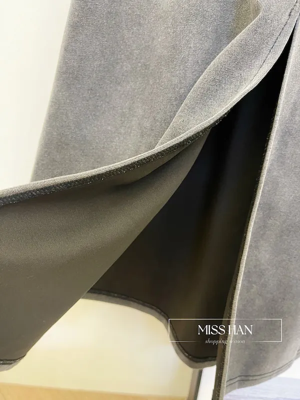 流暢的 A 字版型配合中線壓紋細節,視覺上極具顯瘦與拉長比例的效果。