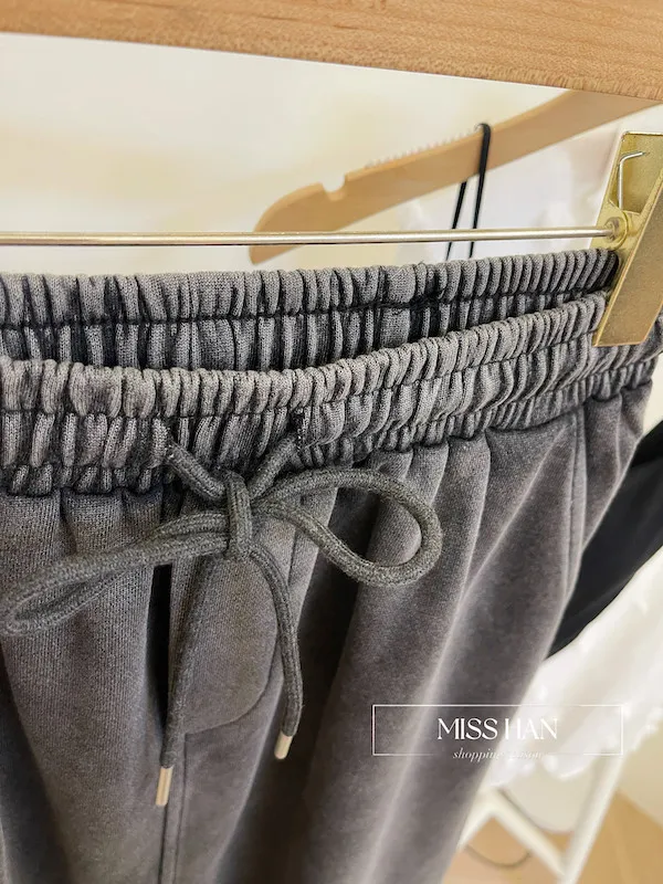 設計: 抽繩鬆緊腰頭 + 修身顯瘦版型。